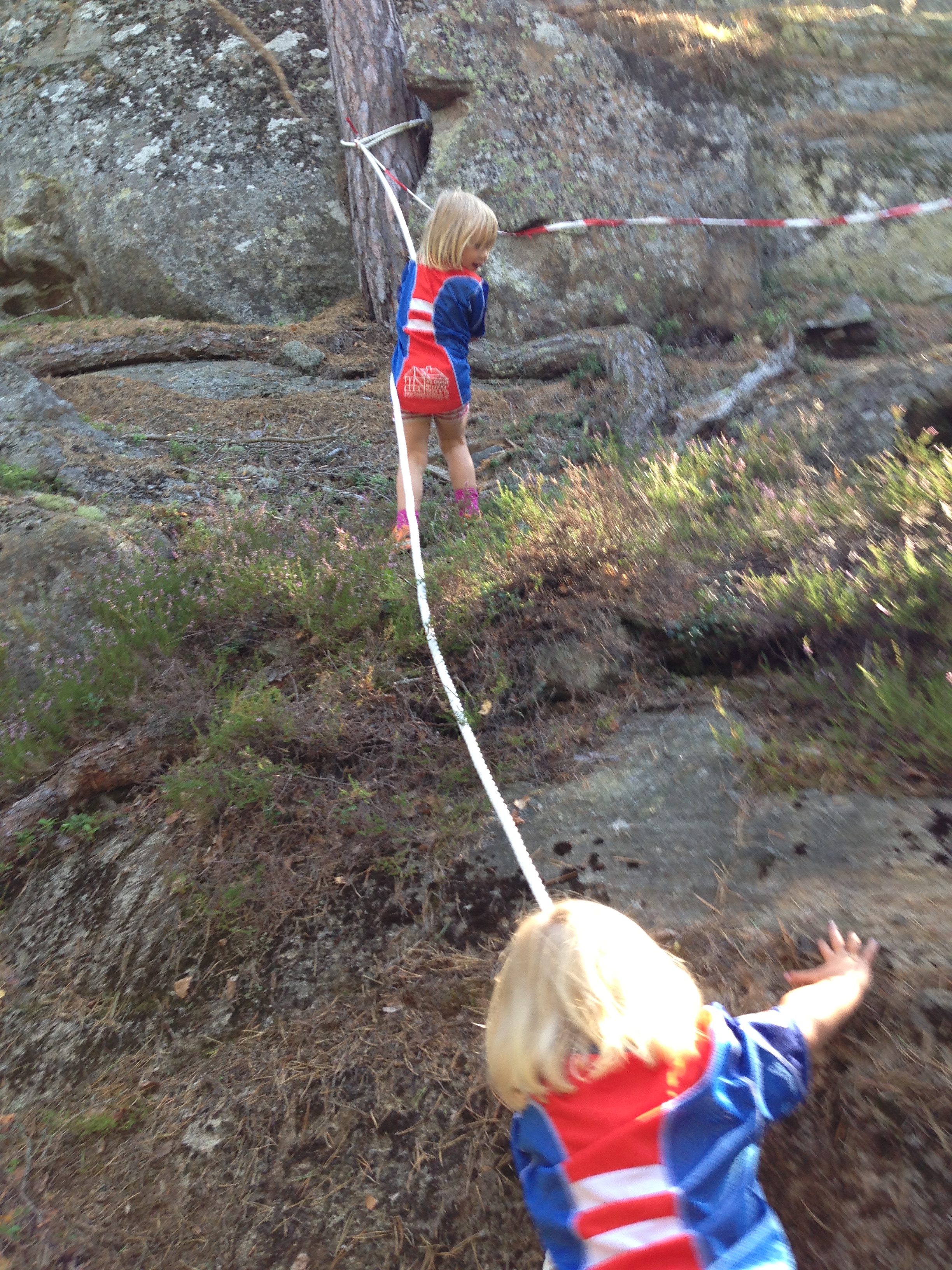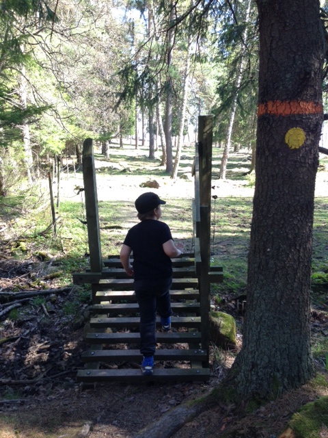 Om ni undrar var vi var, så åkte vi till Klosterbacken. Det är ett fint litet naturreservat i Vallentuna kommun, som hänger ihop med Angarnsjöängen. Vi gick i vacker storskog, genom en hästhage och till sist var vi framme på en blommande enebacke, där vi hade utsikt över fågelsjön. Det är en kort tur på bara cirka två kilometer, men kul att det är så varierande miljö. Dessutom är den bra markerad med gula prickar på träden. -Nu ser jag nästa prick! ropade min pojke och sprang fram på stigen. Skönt när så enkla saker sätter fart på benen.