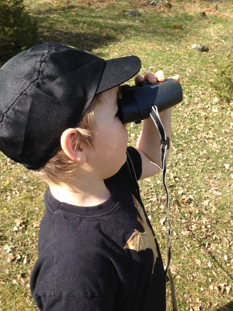 I söndags var vi ute på en skogstur och innan vi åkte hemifrån kom jag på att det skulle vara kul att ta med kikare. Gissa om det blev succé? Min femåringe pojke började använda den redan på garageuppfarten, sedan i bilen ända fram till naturreservatet där vi skulle gå en tur. I skogen hade han den runt halsen hela tiden och provade titta på saker både på nära håll och långt håll. Jättekul! Extra bra var att utflyktens mål var ett utsiktsberg, precis vid en fågelsjö, där spanade vi länge och väl på alla fåglar vi kunde se.