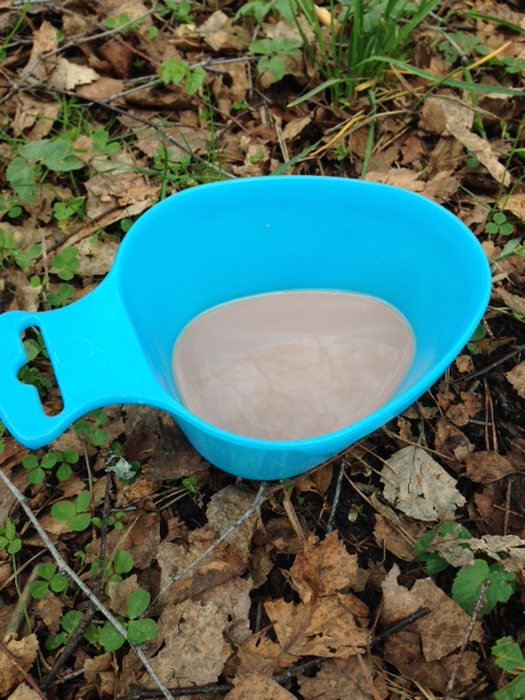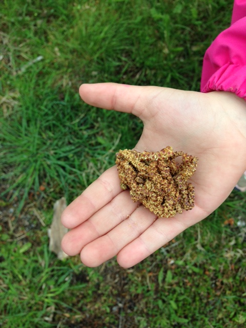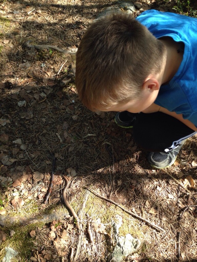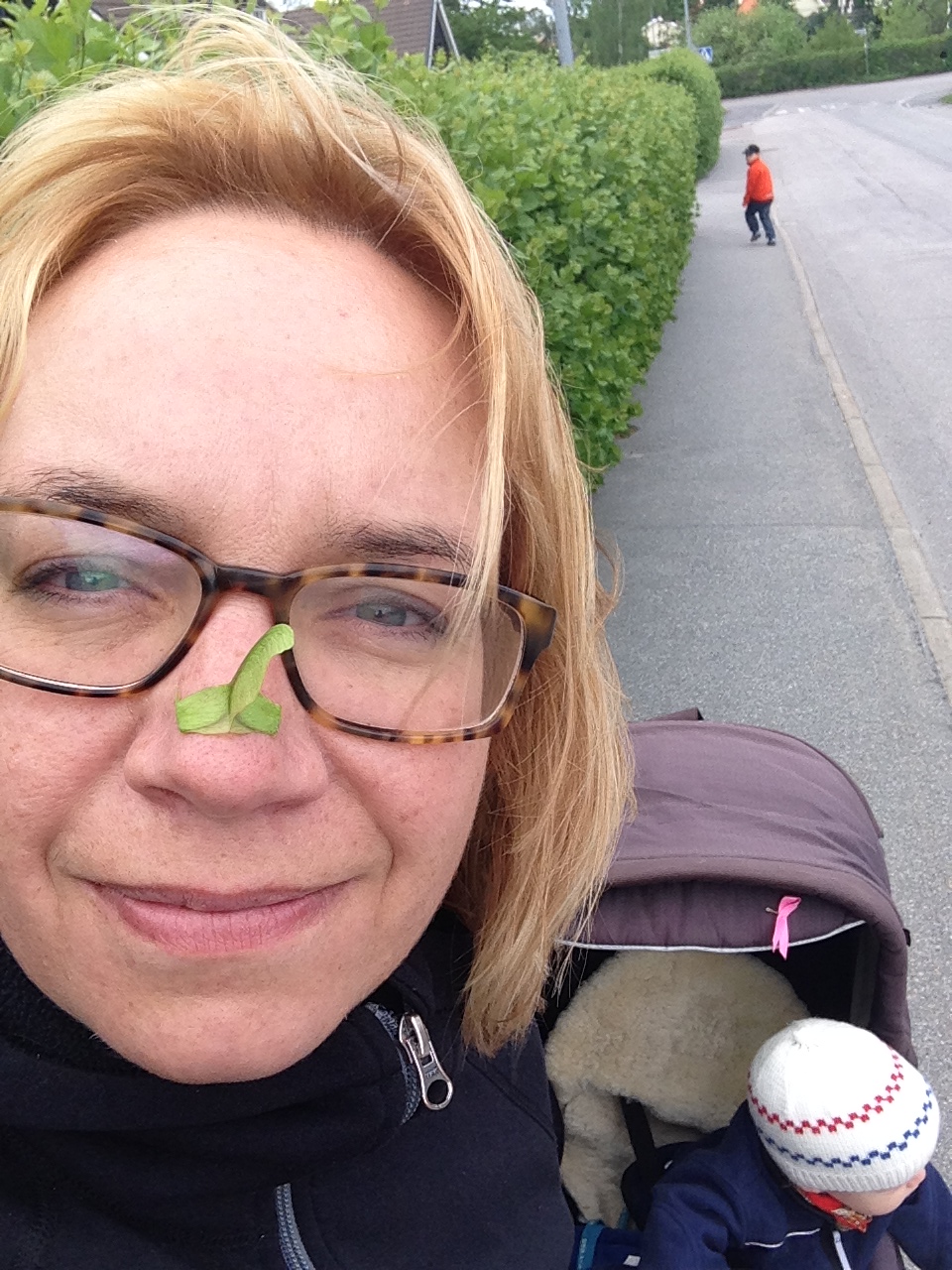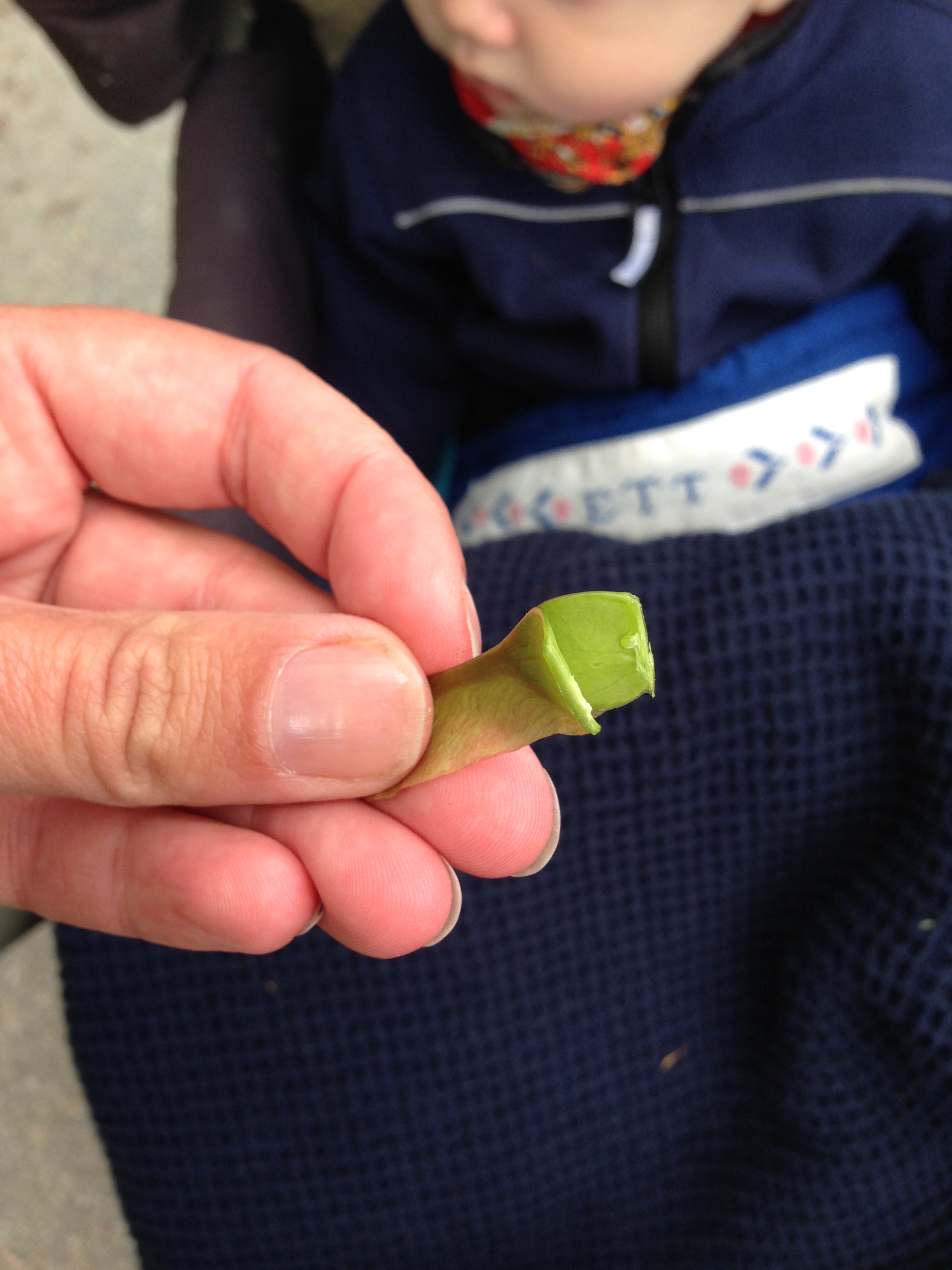 Det här momentet i matlagningen såg inte min son, så han vet inte att det mesta var den vanliga soppan. Jag vet att det här är att luras lite, men ändamålet helgar medlen. Dagens stora grej var att plocka och äta nässlor, vilket vi faktiskt gjorde.