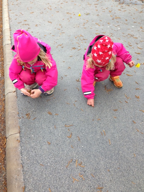 Vi tog på oss handskar och plockade lite blad. Det blev inte så många, men det gjorde inte något.