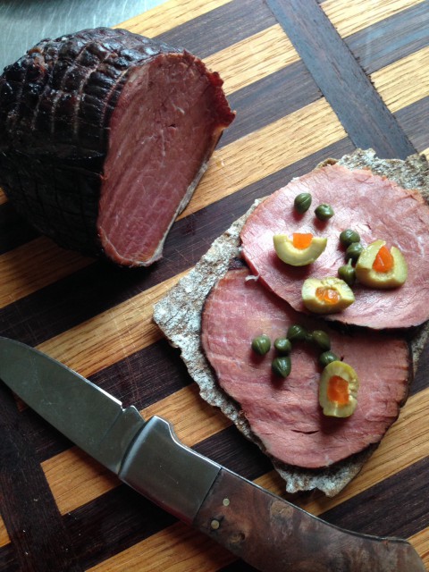 En styckningsdetalj som många inte bryr sig om är tungan. Några har kanske en principiell invändning mot att äta något som någon annan haft i munnen – glöm det. Tungan är en god och mör köttbit om den tillagas rätt. Oftast brukar man koka tunga, men då blir den bara blek och tråkig. Prova att röka den istället. Jag lämnade in en älgtunga hos Svartrökarna här i Vallentuna för ett tag sedan. Han som tog emot den hade aldrig rökt tunga förut, så det blev ett spännande experiment. I helgen var det dags att smaka. Det var jättegott, en delikatess helt enkelt!